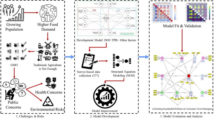 یافتهها همچنین نشان میدهد آگاهی و قیمت، بیش از آنکه بهطور مستقیم رفتار خرید را تعیین کنند، از طریق تأثیرگذاری بر ادراک مصرفکننده نسبت به مزایا و ارزش محصول، نقش غیرمستقیم، اما مهمی در پذیرش غذاهای تراریخته ایفا میکنند. در مقابل، هنجارهای ذهنی و کنترل رفتاری ادراکشده نقش محدودتری در تصمیمگیری مصرفکنندگان داشتهاند.